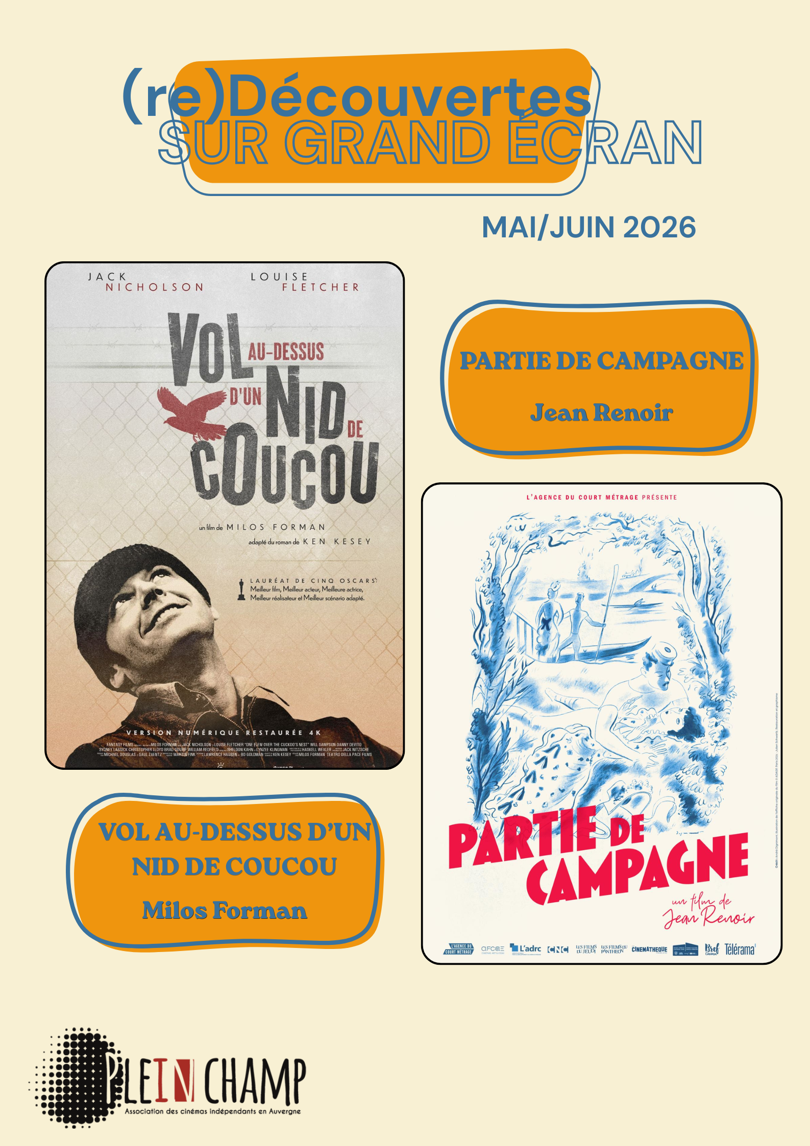 Plein Champ intervient dans cinq domaines : l’aide à une programmation diversifiée, l’animation, la promotion, la formation et s’appuie sur la mise en commun de moyens techniques, humains et financiers entre les salles adhérentes. L’association est aussi un lieu ressources pour les salles et pour les structures souhaitant organiser des actions avec les cinémas.